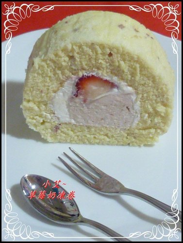 因為孩子喜歡吃草莓,所以做了草莓蛋糕捲,