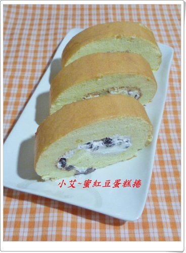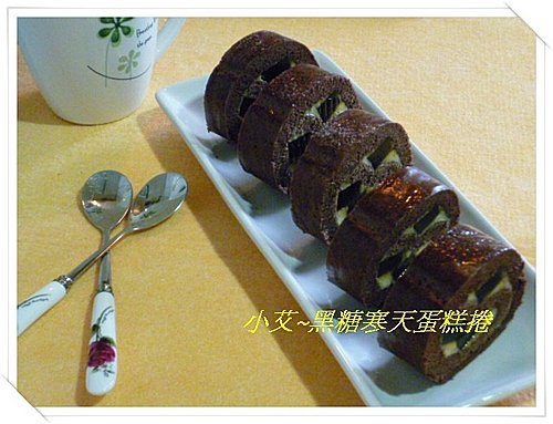 用切好的2塊蛋糕捲請你嘿
